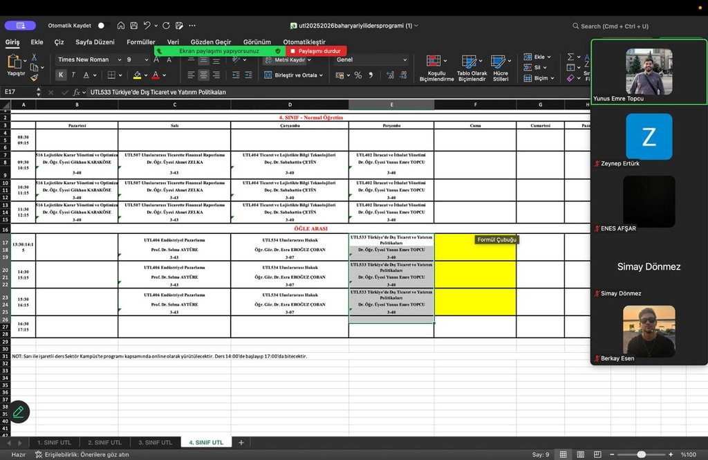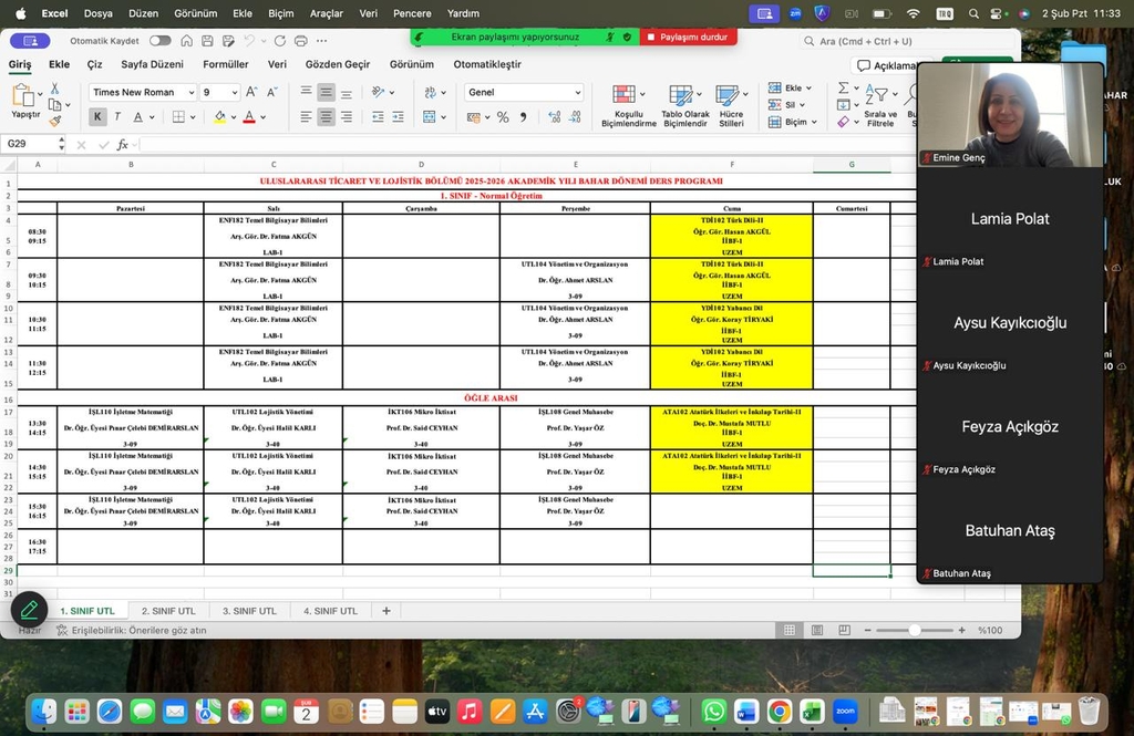 2025-2026 Akademik yılı bahar dönemi için her sınıfın danışmanları öğrencileriyle bir toplantı yaptı. Toplantılarda öğrencilerimiz ders seçimlerini danışman hocalarıyla birlikte çevrimiçi olarak gerçekleştirdi.